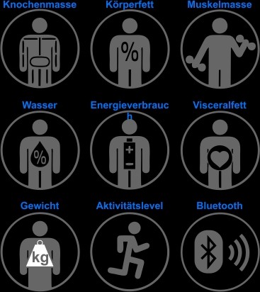 Als Bluetooth®-Technologie verwendet diese Waage folgende Standards: 2.1, 3.0 und BLE 4.0 und ist somit mit allen Apps kompartiebel, welche die obengenannten Messwerte trackt.